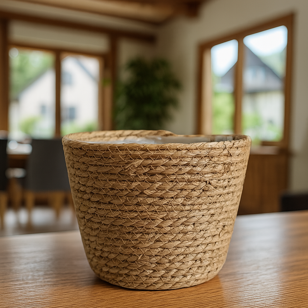 Der Blumentopf kommt mit einem praktischen, wasserdichten Innentopf – ideal zum direkten Bepflanzen oder für Übertöpfe. Einfach auspacken, Pflanze einsetzen und den natürlichen Look genießen. Für ein harmonisches Gesamtbild lässt sich der Topf wunderbar mit weiteren Naturmaterialien kombinieren.