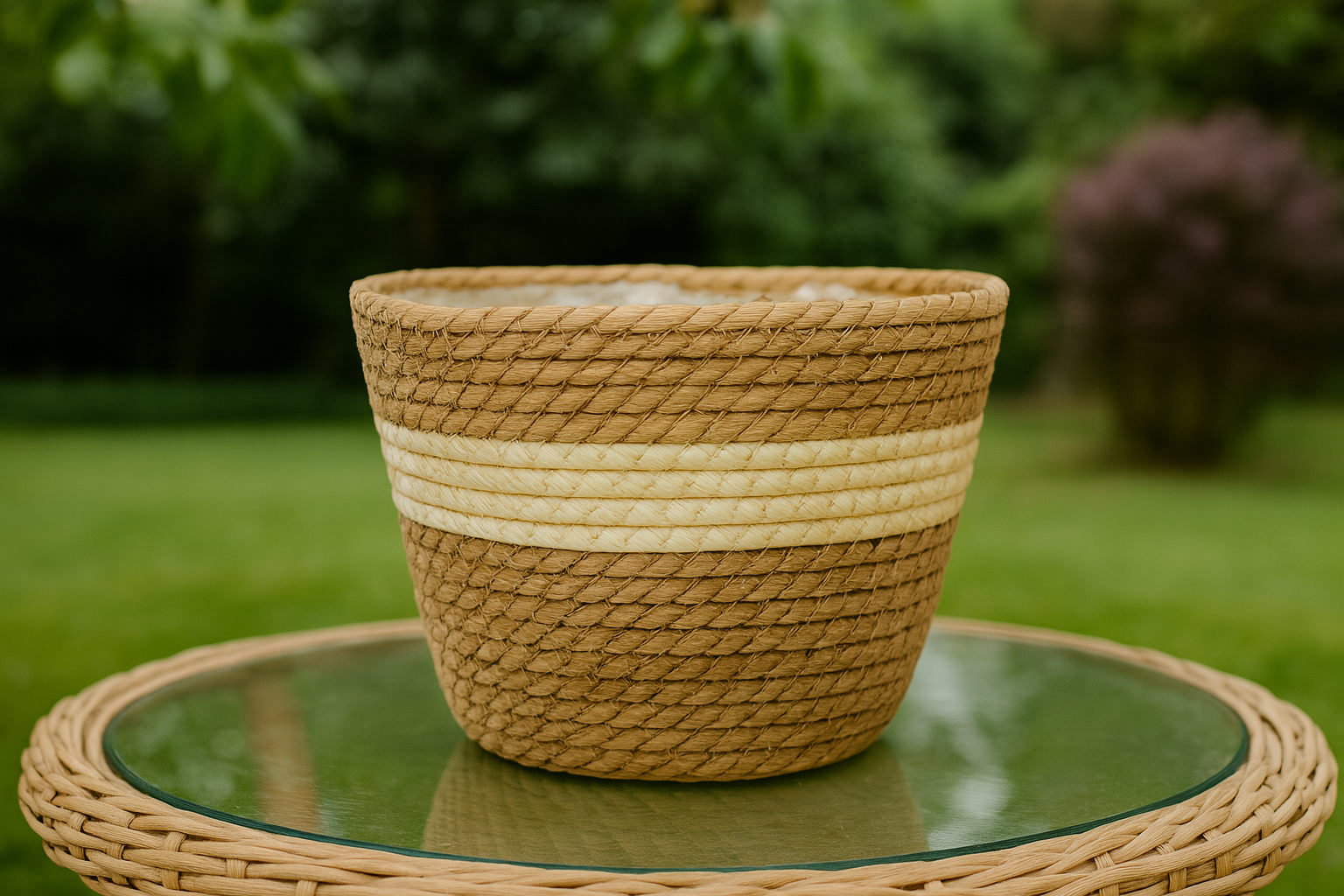 Handgewebter Blumentopf aus Seegras