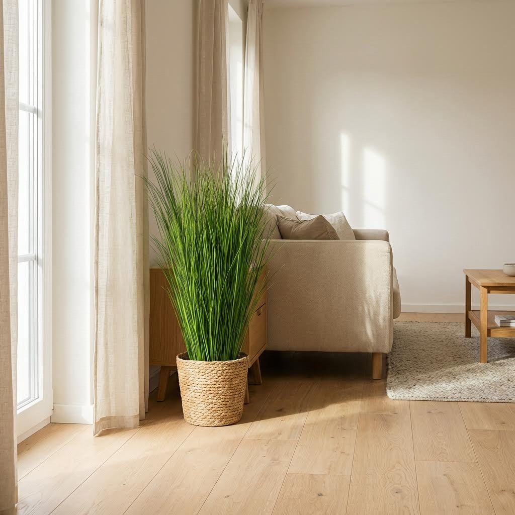 Dieses künstliche Schilfgras-Set besteht aus 10 üppigen Schilfgras-Pluimen, die jeweils aus zahlreichen feinen, aufrechten Halmen bestehen und zusammen eine dichte, volle Grasoptik ergeben. Ideal für moderne Arrangements und dekorative Gruppierungen. Die Höhe beträgt ca. 50 cm pro Pluim.