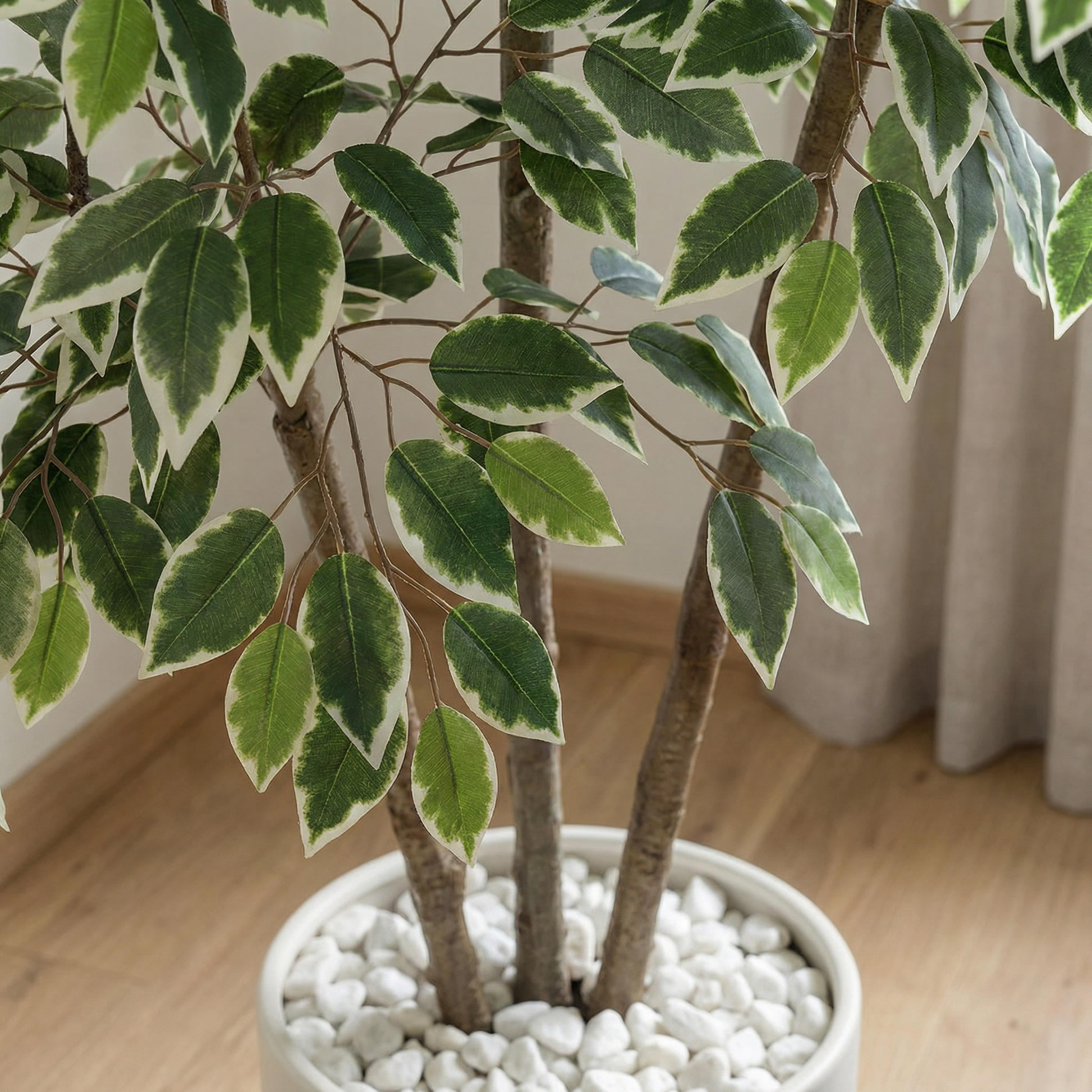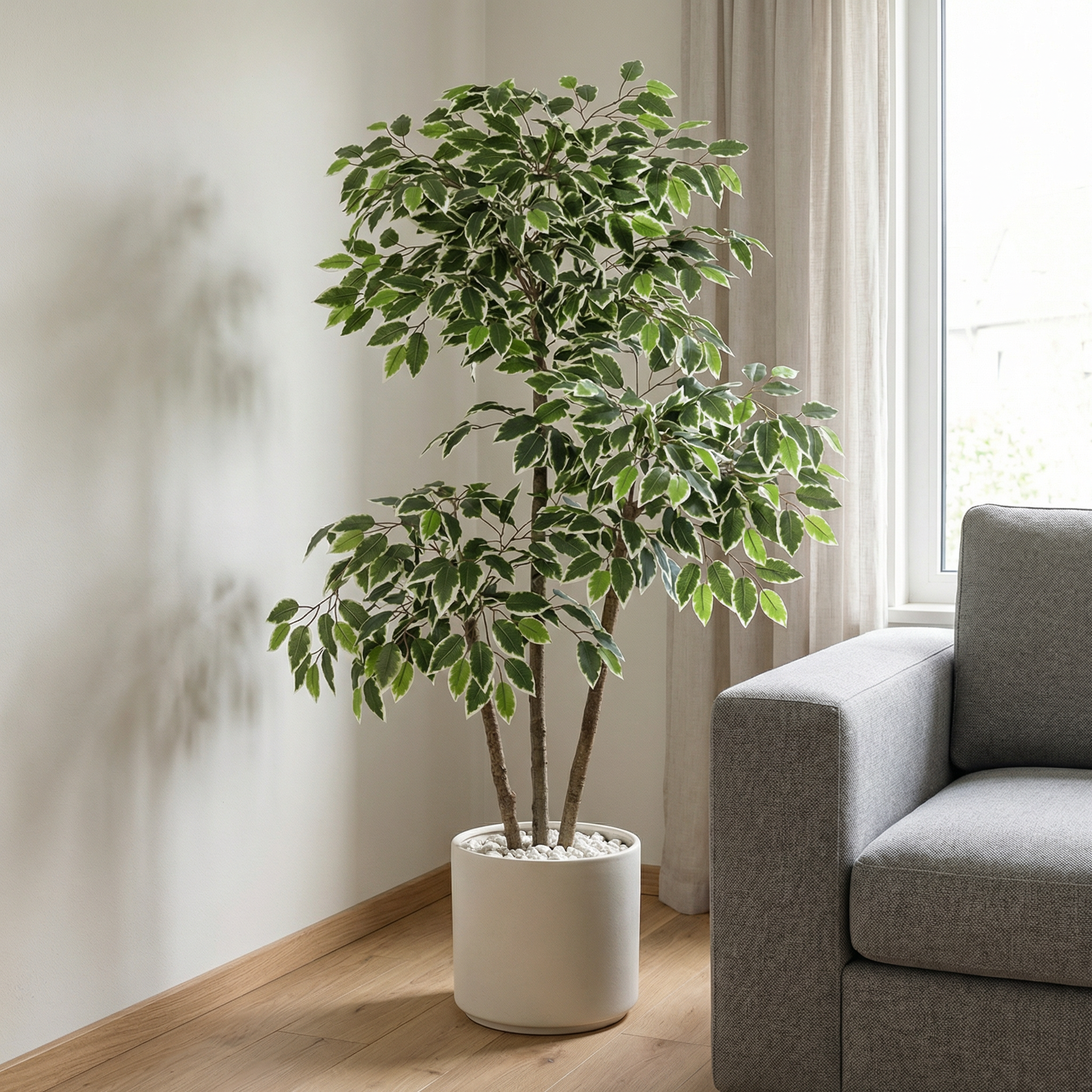 Der künstliche Ficus Benjamina wird inklusive dekorativem Pflanztopf geliefert und ist sofort einsatzbereit.