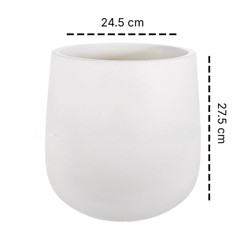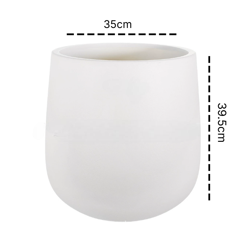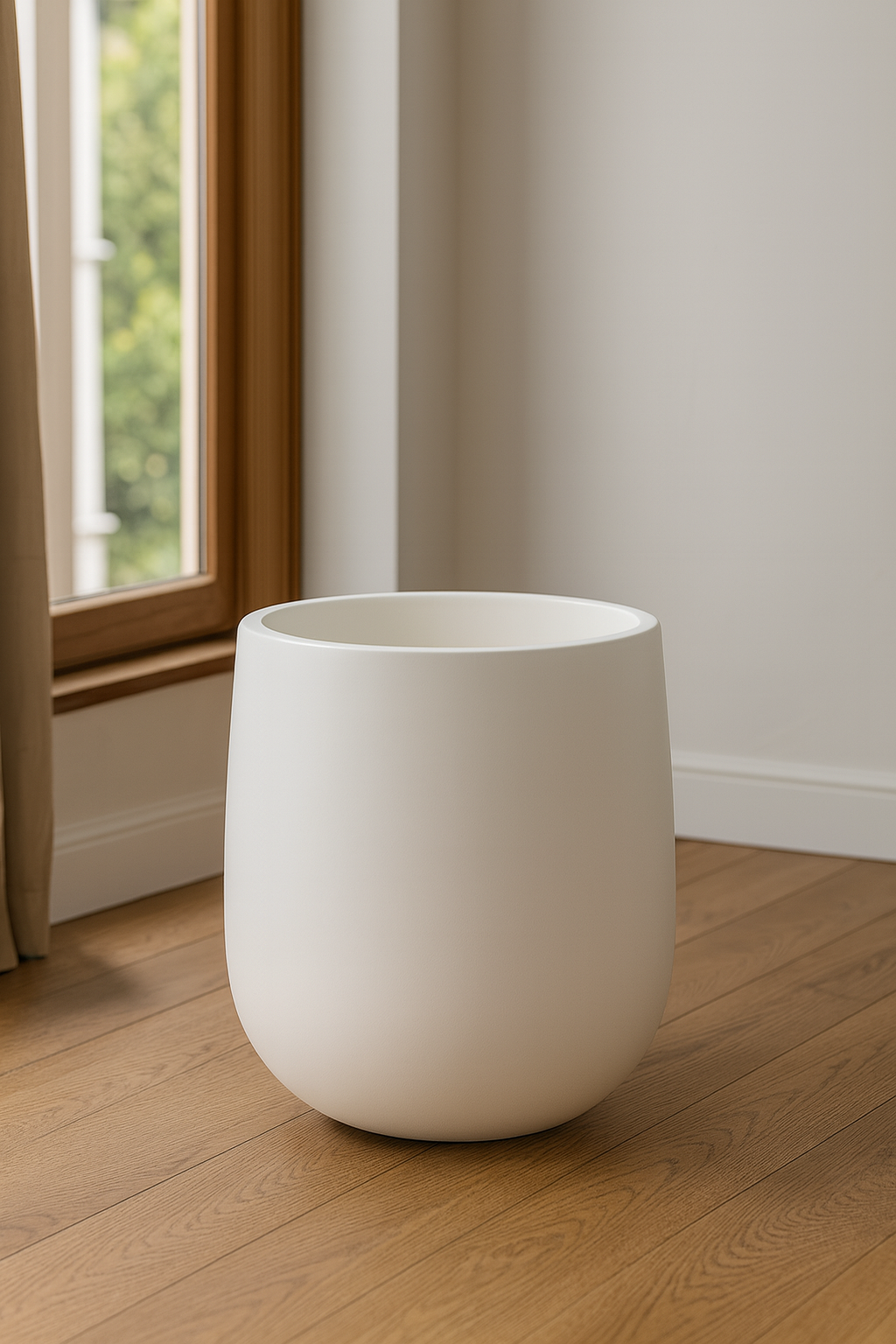 Du schätzt zeitloses Design und klare Formen? Dieser minimalistische Blumentopf aus hochwertigem Kunstharz überzeugt mit seiner sanft abgerundeten Form und matten Oberfläche in elegantem Weiß. Ideal, um deine Pflanzen stilvoll in Szene zu setzen – ob im Wohnzimmer, Schlafzimmer oder auf dem Sideboard.