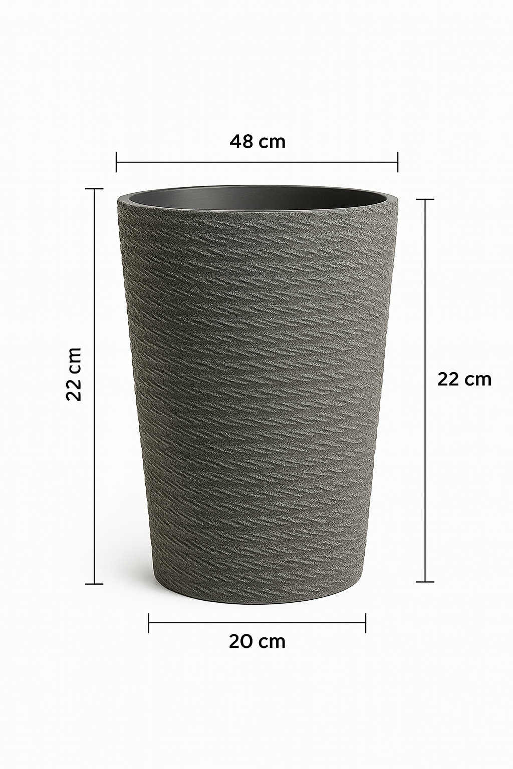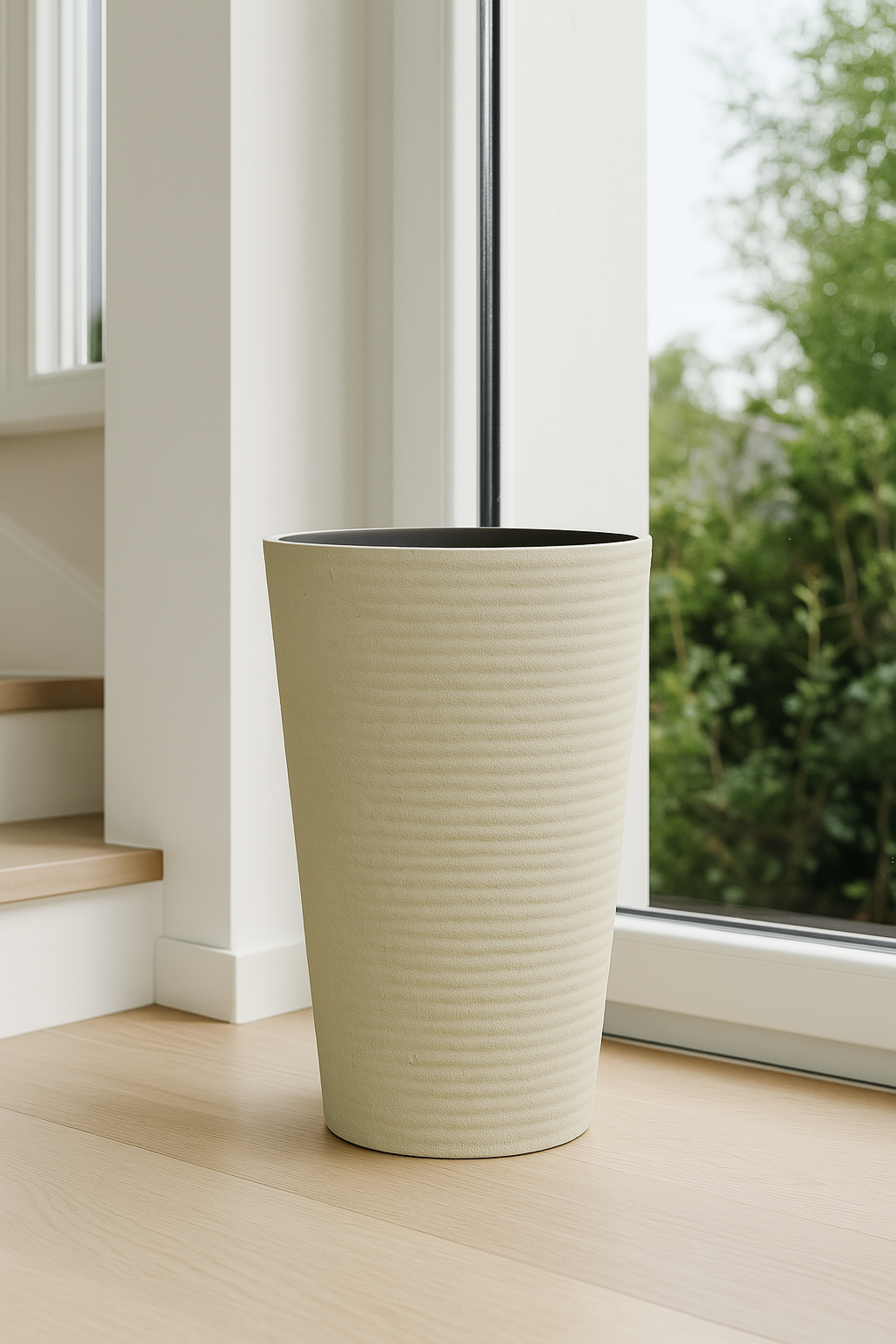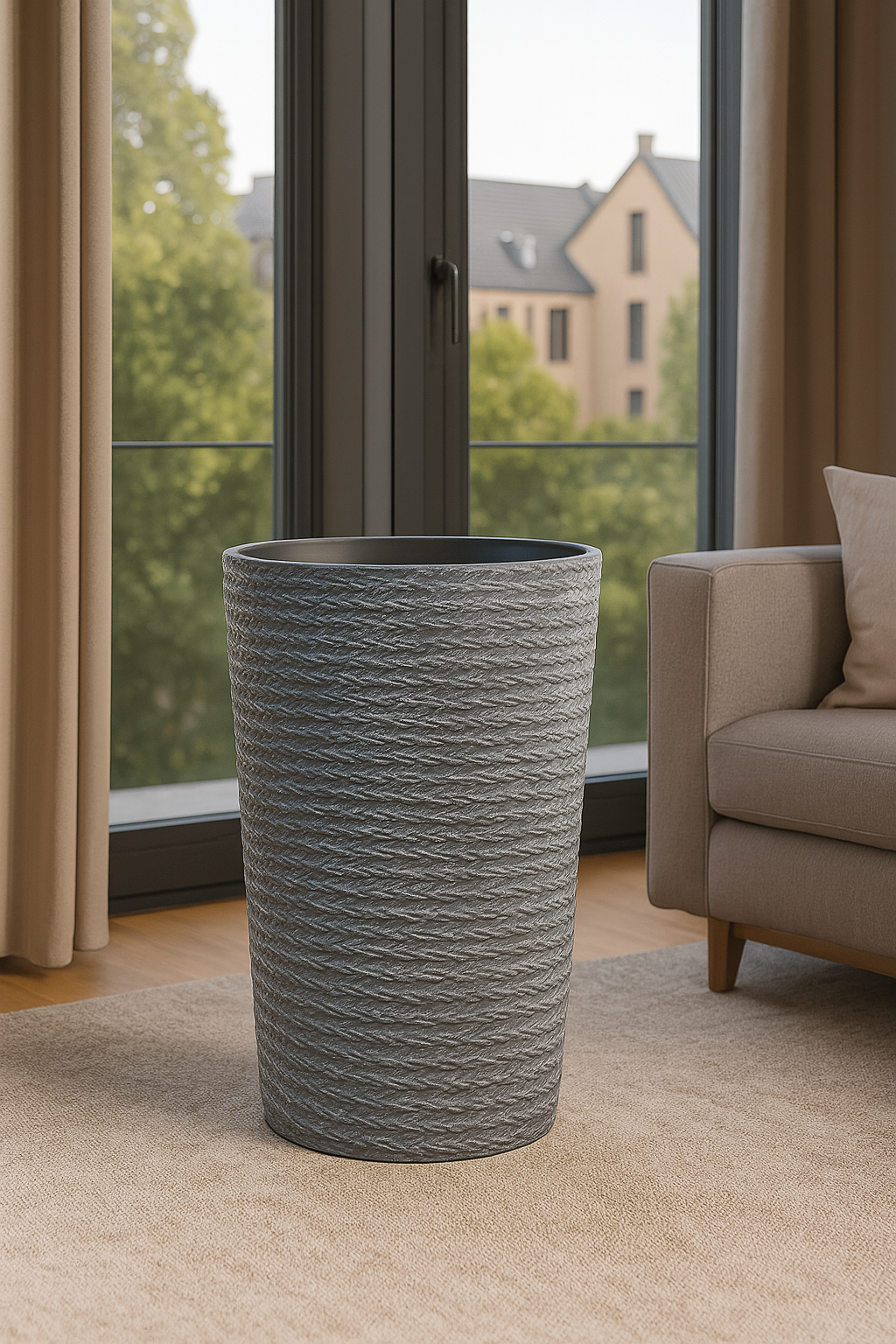 Du suchst nach einem eleganten Pflanzkübel, der sich harmonisch in moderne Wohn- und Außenbereiche einfügt? Der strukturierte, hohe Pflanzkübel aus robustem Kunstharz überzeugt mit seiner markanten Seiloptik und klaren Form. Ob im Wohnzimmer, auf dem Balkon oder im Eingangsbereich – dieser Topf verleiht deinem Ambiente eine exklusive, urbane Note.