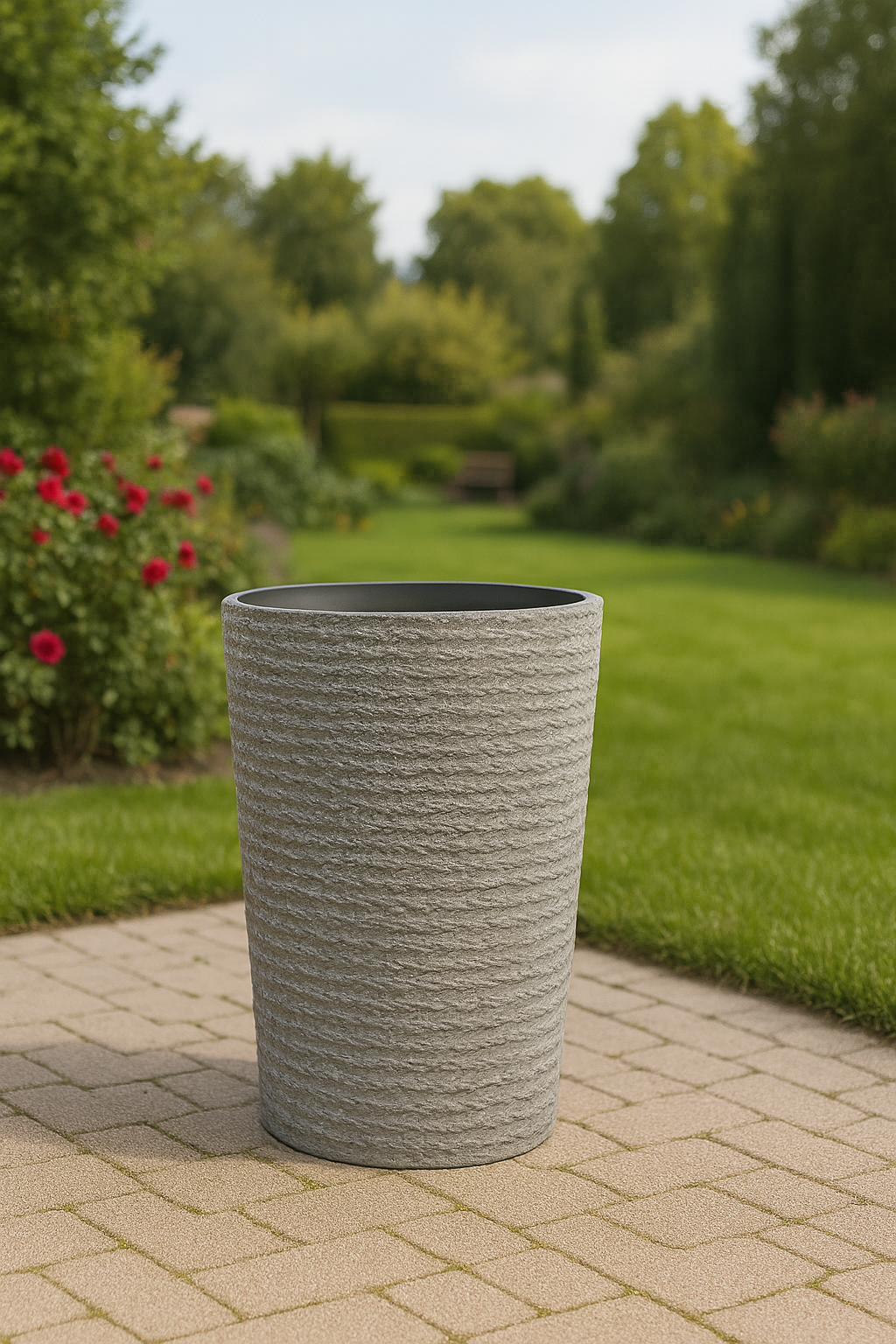 Moderner, strukturierter, hoher Pflanzkübel aus Kunstharz