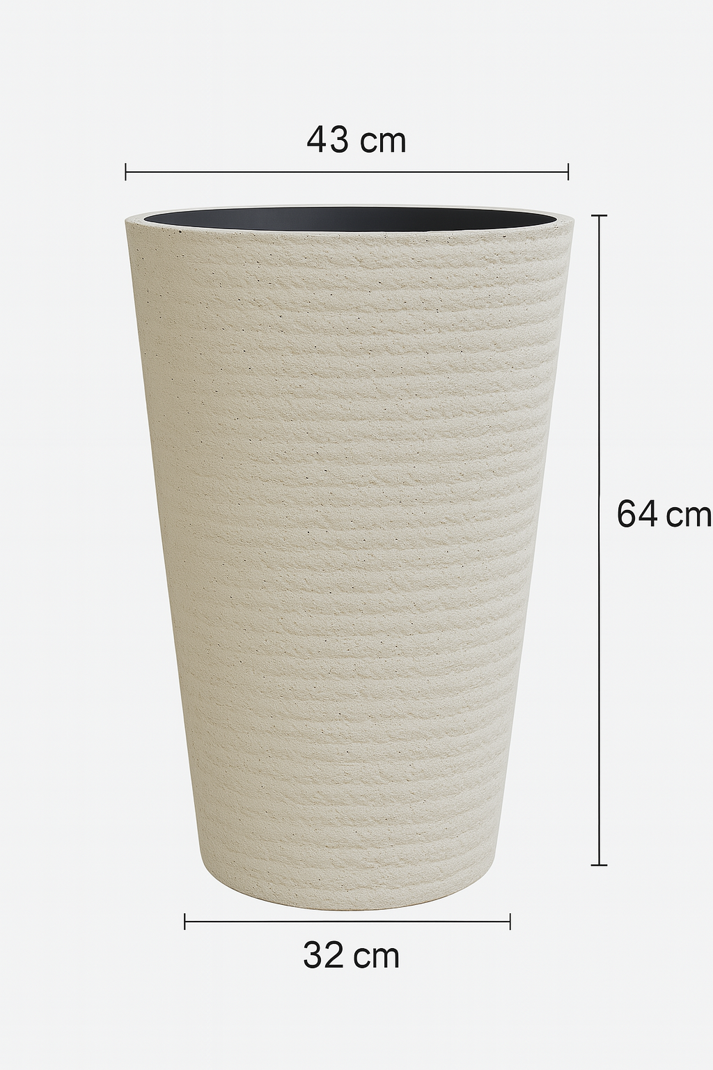Gefertigt aus hochwertigem, UV- und frostbeständigem Resin, ist der Pflanzkübel besonders widerstandsfähig und pflegeleicht. Die extra große Form bietet ausreichend Platz für größere Pflanzen oder kreative Arrangements