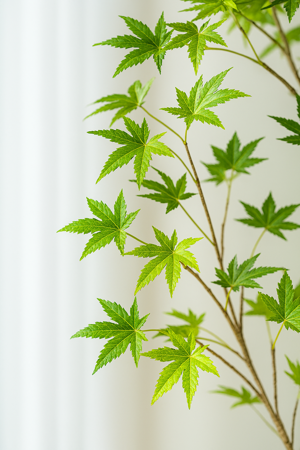 Möchten Sie Ihrem Zuhause einen Hauch fernöstlicher Harmonie verleihen? Dann ist dieser große künstliche Ahornbaum genau das Richtige für Sie. Mit seinen fein gezackten, naturgetreuen Blättern bringt er die ruhige Schönheit japanischer Gärten in Ihr Interieur – ganz ohne Pflege, Wasser oder Sonnenlicht.