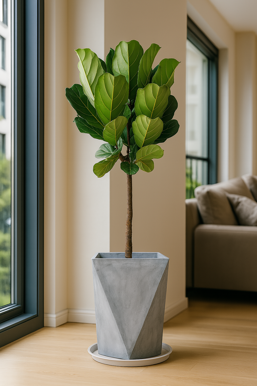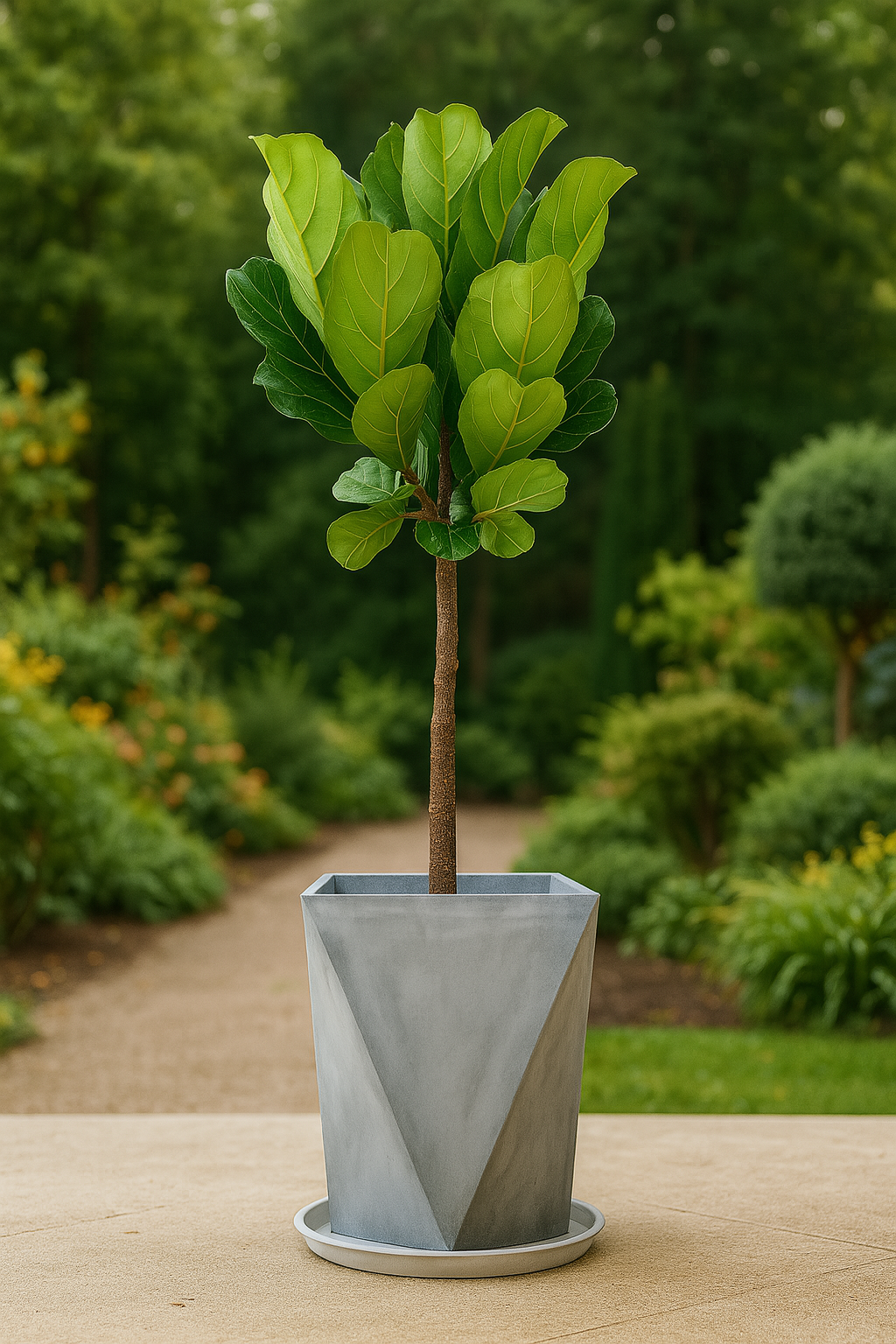 Stellen Sie den Geigenbogen-Feigenbaum in ein Pflanzgefäß Ihrer Wahl, das perfekt zu Ihrer Einrichtung passt. Einfach auspacken, aufstellen und das tropische Flair genießen.