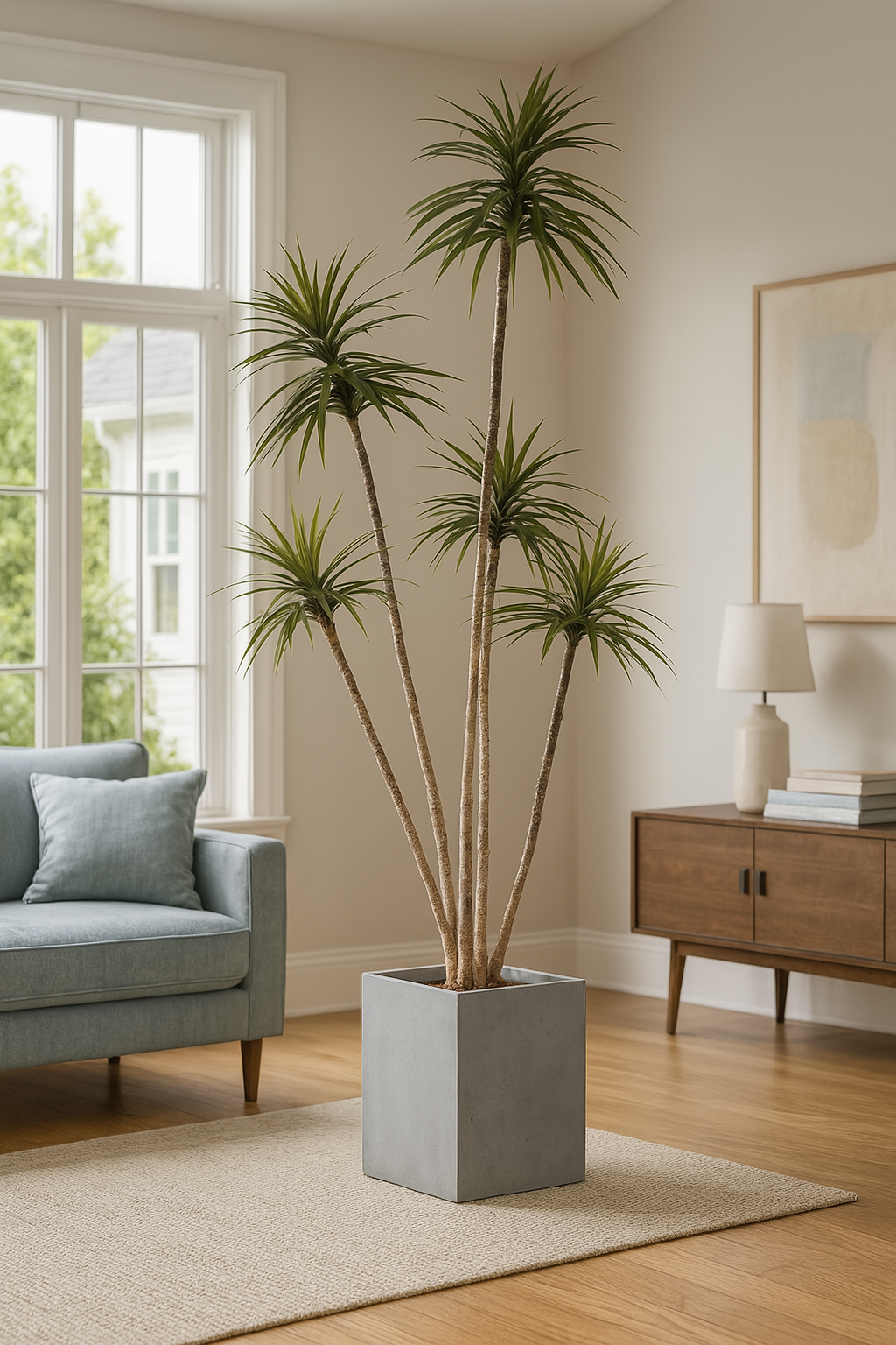 Du sehnst dich nach dem entspannten Ambiente ferner Tropen? Der künstliche Agavenbaum mit seinen eleganten, aufragenden Stämmen und den charakteristischen, schlanken Blättern bringt genau dieses exotische Flair direkt in dein Zuhause. Ausdrucksstark, modern und völlig pflegefrei – perfekt, um Wohnzimmer, Eingangsbereich oder Büro in eine stilvolle Tropenoase zu verwandeln.