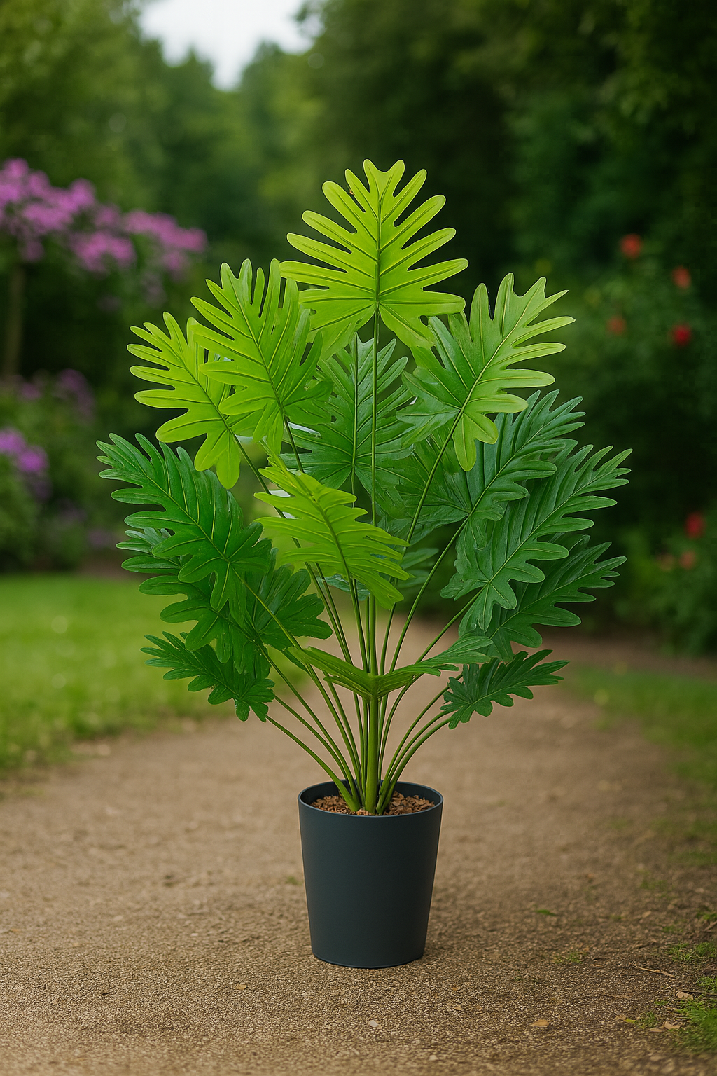 Sehnen Sie sich nach der entspannten Atmosphäre ferner Tropen? Der künstliche Philodendron-Baum TropenTraum™ mit seinen üppigen, tief eingeschnittenen Blättern bringt dieses Gefühl direkt in Ihr Zuhause. Sein naturgetreues Aussehen und sein charakteristisches Blattwerk schaffen eine exotische Atmosphäre – stilvoll, dekorativ und völlig pflegefrei. Ideal für das Wohnzimmer, den Flur oder den Wintergarten.
