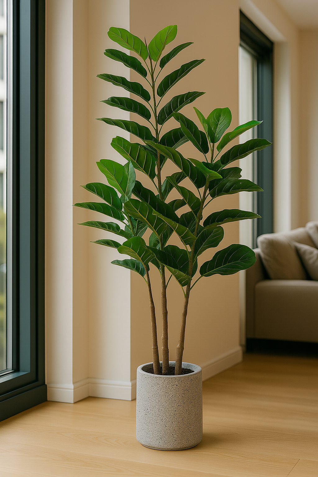 Du möchtest deinem Zuhause einen Hauch tropischer Eleganz verleihen? Der künstliche Geigenblatt-Banyanbaum kombiniert dichte, große Blätter mit natürlicher Wuchsform – ideal, um jedem Raum ein frisches, exotisches Ambiente zu verleihen. Die realistische Blattstruktur und der mehrstämmige Stamm machen ihn zu einem echten Blickfang – ganz ohne Gießen, Sonnenlicht oder Pflege.