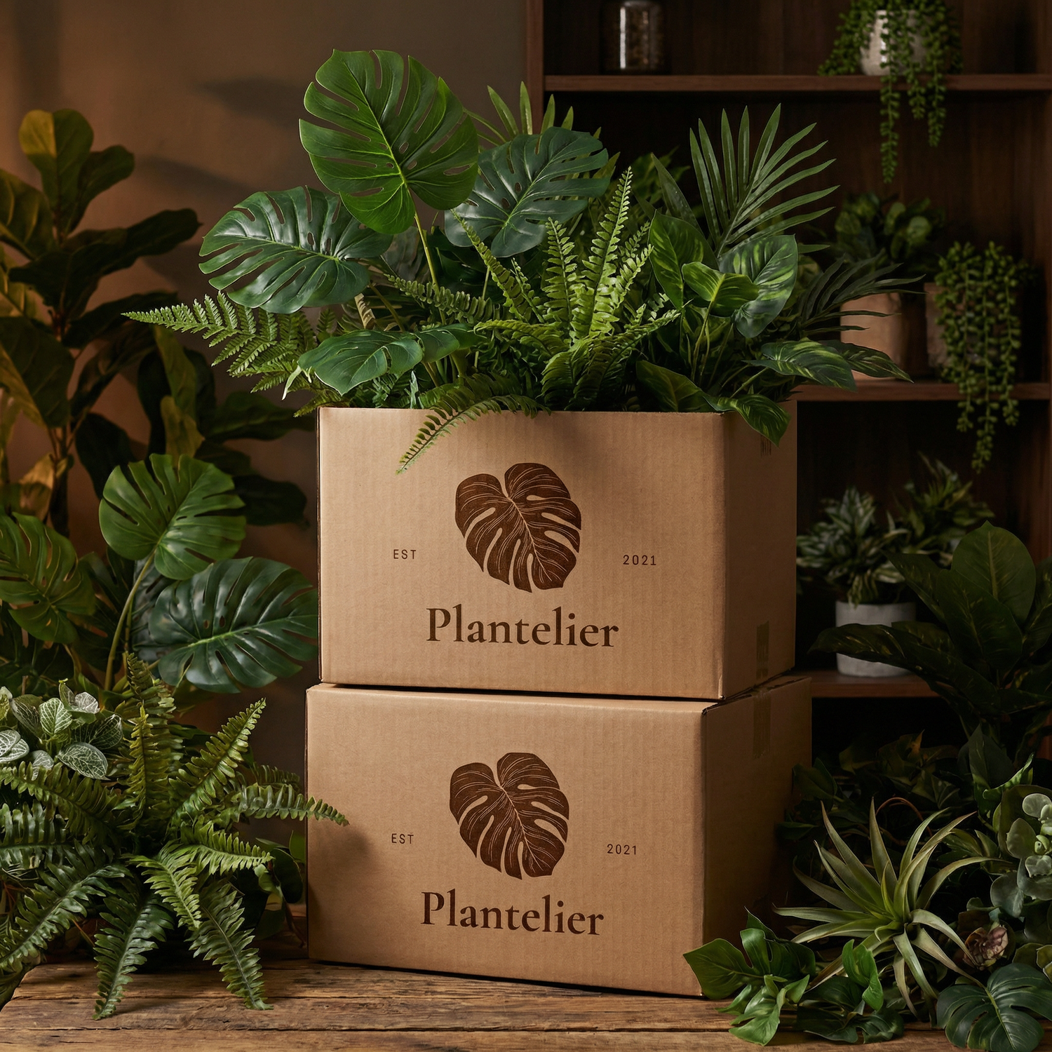 Geliefert wird die künstliche Pflanze in einem beschwerten schwarzen Innentopf (Gärtnertopf); ein dekorativer Übertopf ist nicht enthalten, dekorative Übertöpfe sind separat im Shop erhältlich.