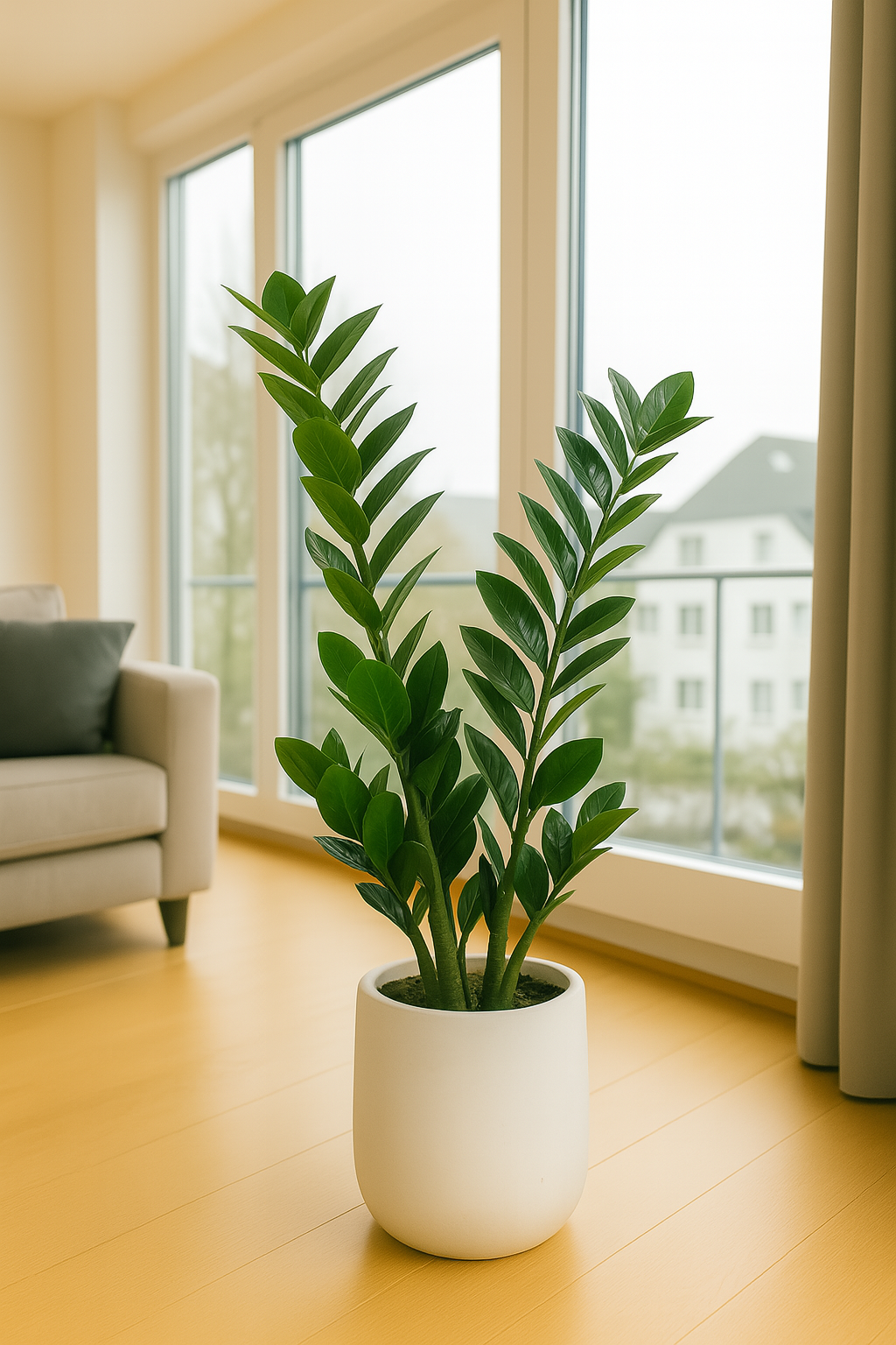 Du möchtest deinem Zuhause einen Hauch tropischer Eleganz verleihen? Der künstliche Sansibar-Edelstein bringt mit seinen tiefgrünen, glänzenden Blättern und der modernen, aufrechten Form ein Gefühl von Ruhe und Exotik in deine Räume. Besonders pflegeleicht und dennoch stilvoll – perfekt für Wohnzimmer, Schlafzimmer oder Büro.