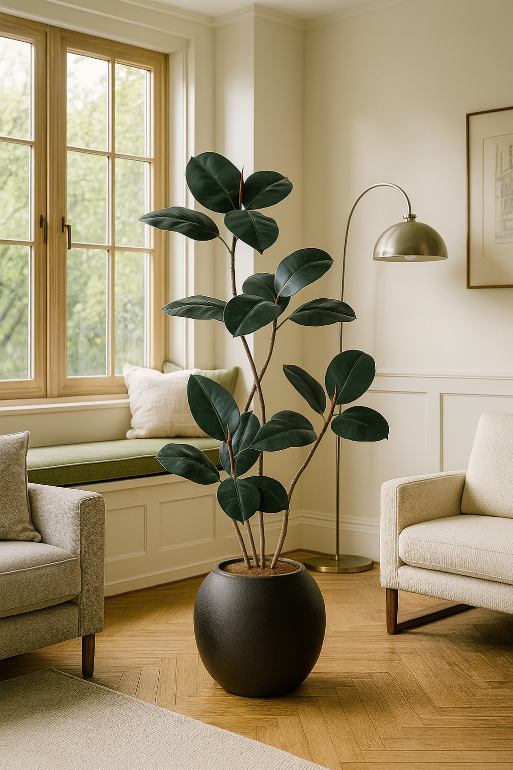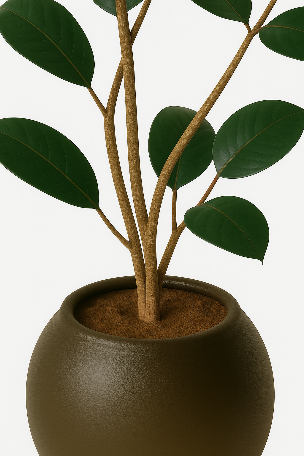 Platziere den Gummibaum in einem Pflanzgefäß deiner Wahl und passe ihn so perfekt an deinen Einrichtungsstil an.