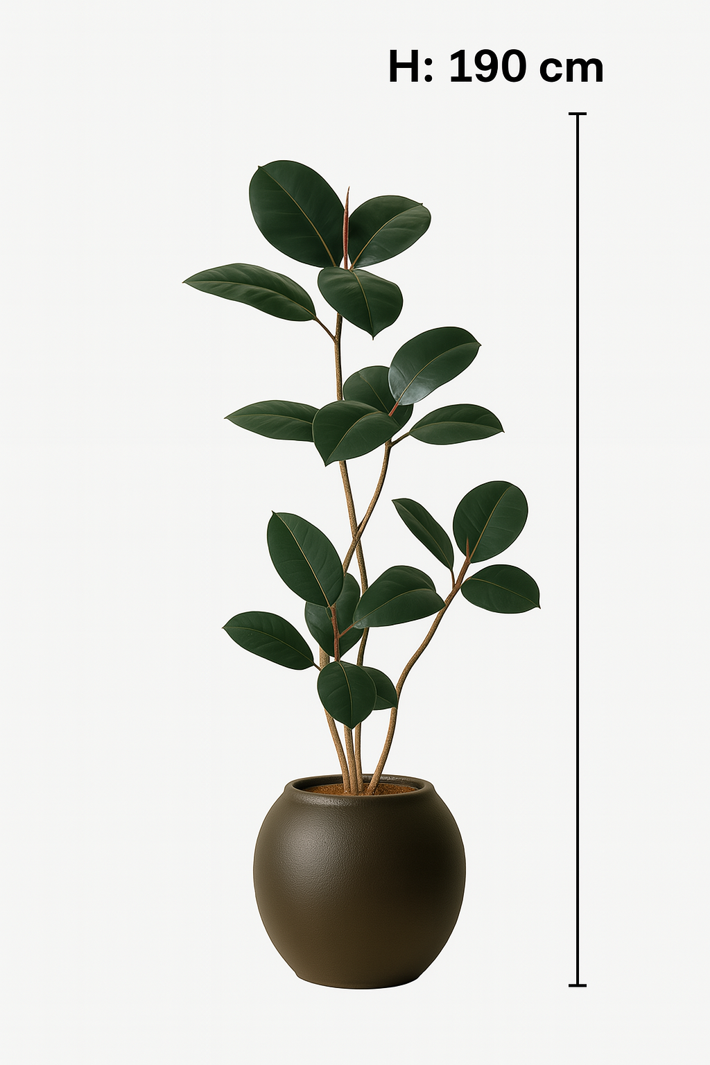 Du sehnst dich nach dem entspannten Ambiente ferner Tropen? Der TropenTraum™ – Künstlicher Schwarz-Gold-Gummibaum mit seinen tiefgrünen, glänzenden Blättern auf eleganten Ästen bringt genau dieses Gefühl direkt in deine vier Wände. Mit seiner modernen, stilvollen Ausstrahlung verleiht er jedem Raum ein luxuriös-exotisches Flair – komplett pflegefrei und immergrün. Ideal für Wohnzimmer, Leseecke oder Büro.